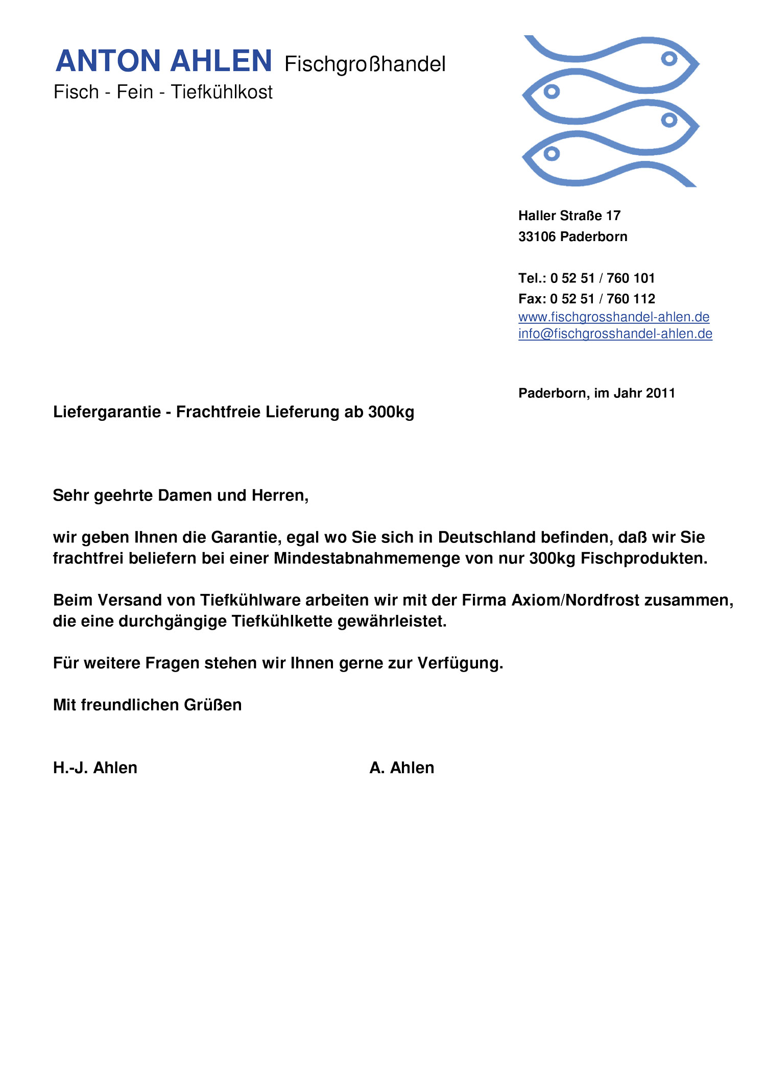 - Firma Anton Ahlen Fischgroßhandel ist ein dynamisches Unternehmen und Ihr zuverlässiger Partner im Bereich der Fischprodukte und Meeresfrüchte. Seit der Firmengründung im Jahre 1952 setzen wir auf stetige Weiterentwicklung zum Vorteil unserer Kunden